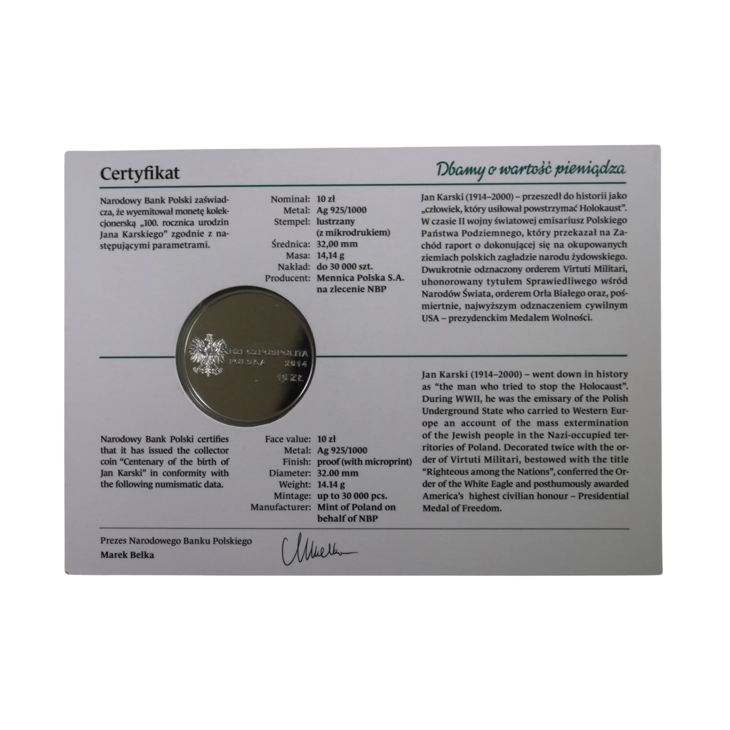 10 zł 2014 100. rocznica urodzin Jana Karskiego