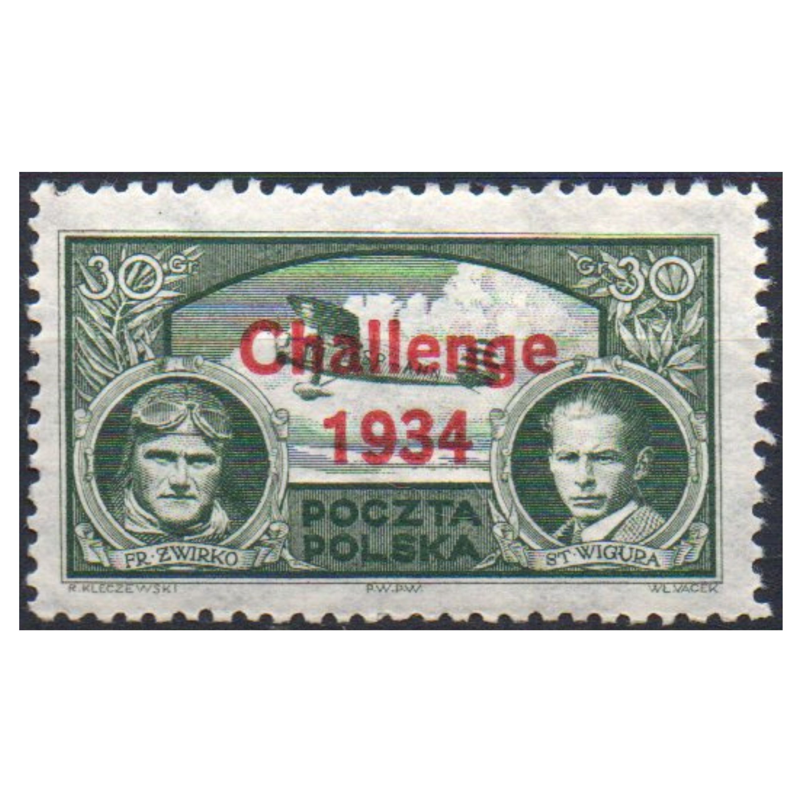 Międzynarodowe Zawody Samolotów Turystycznych Challenge 1934 - odbywały się w dniach 28 sierpnia–16 września 1934 roku w Warszawie i były czwartym i ostatnim konkursem z cyklu Challenge organizowanym przez Międzynarodową Federację Lotniczą. Zakończyły się zwycięstwem ekipy polskiej, w skład której wchodzili Jerzy Bajan i Gustaw Pokrzywka. Na znaczkach pokazano zwycięską ekipę z 1932 r. – Franciszka Żwirko i Stanisława Wigurę (zginęli w katastrofie lotniczej w 1932 r.) i samolocie RWD-6