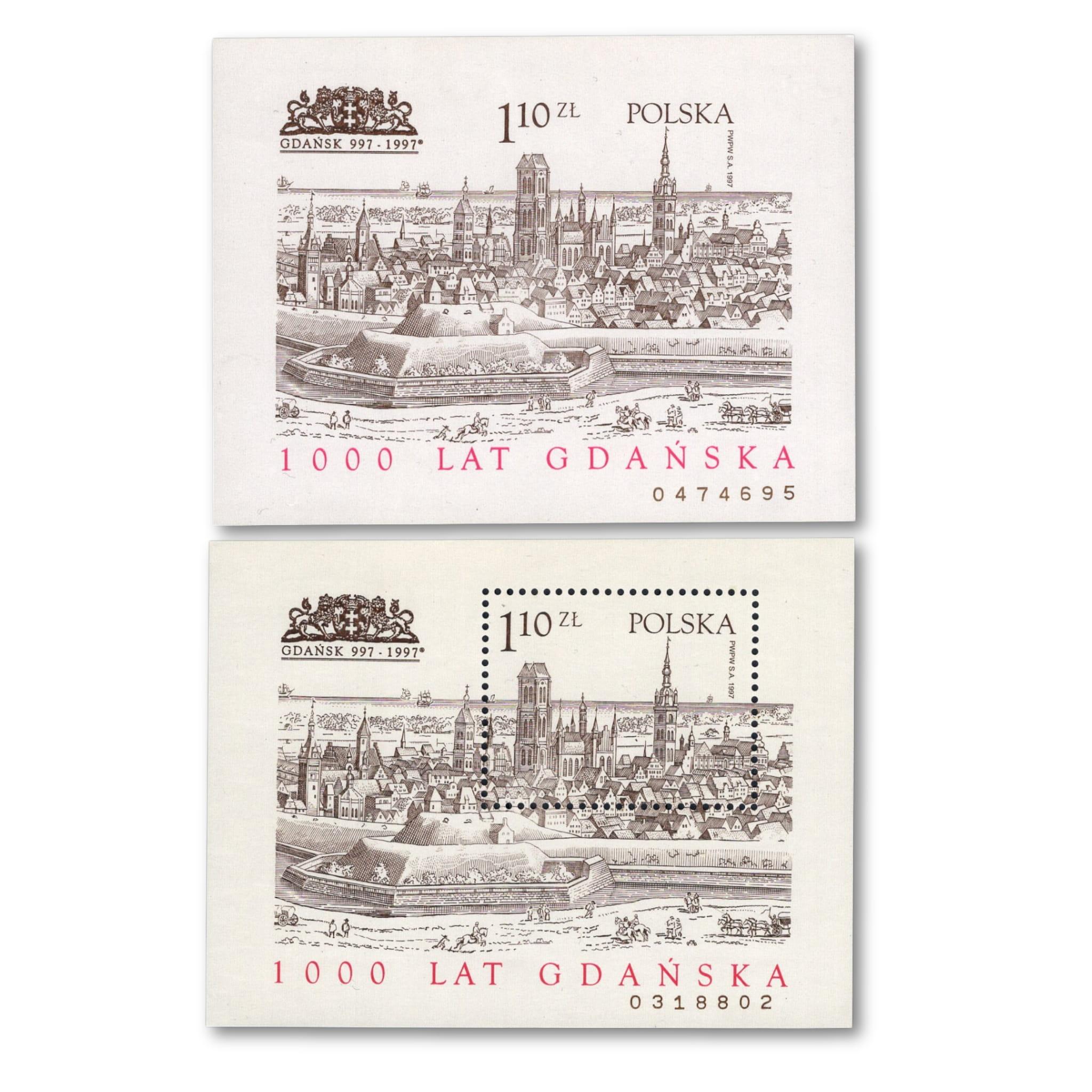 Blok wydany z okazji obchodów 1000 istnienia Gdańska. Na znaczku pokazano Kościół Mariacki i Ratusz Głównego Miasta wg ryciny „Panorama Gdańska z Biskupiej Góry" Mateusza Meriana z 1640 r. i panoramy C. J. Visschera juniora "Piscatora" z 1620 r.