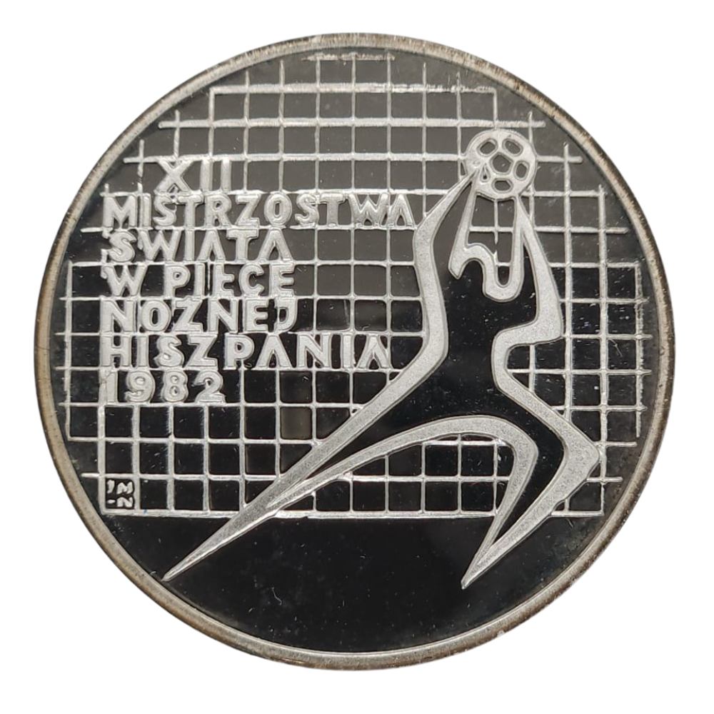 Moneta została wyemitowana z okazji XII Mistrzostw Świata w Piłce Nożnej, które odbyły się w 1982 roku w Hiszpanii. Było to wyjątkowe wydarzenie dla polskiego sportu, podczas którego reprezentacja Polski pod wodzą Antoniego Piechniczka zajęła historyczne trzecie miejsce. Na rewersie monety przedstawiono dynamiczną sylwetkę piłkarza w trakcie gry (wykonującego tzw. „przewrotkę”) na tle stylizowanej siatki bramkowej. Moneta ta jest chętnie poszukiwana zarówno przez numizmatyków, jak i kolekcjonerów pamiątek sportowych.