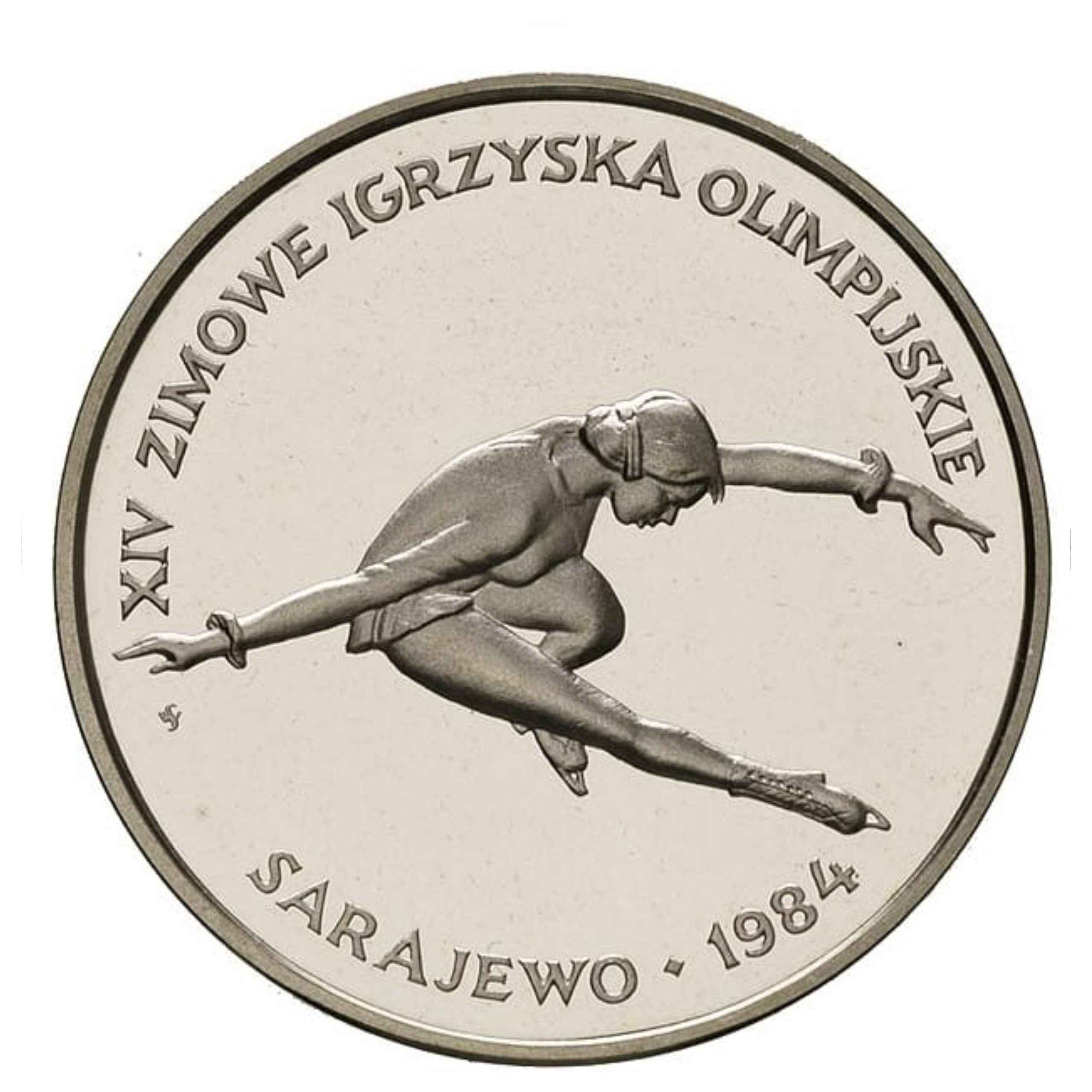 Moneta została wyemitowana z okazji XIV Zimowych Igrzysk Olimpijskich, które odbyły się w 1984 roku w Sarajewie. Upamiętnia ona udział polskich sportowców w tym globalnym święcie sportu. Na rewersie monety widnieje dynamiczna sylwetka skoczka narciarskiego w locie, co nawiązuje do jednej z najbardziej widowiskowych dyscyplin zimowych. Poniżej wizerunku znajduje się napis SARAJEWO 1984 oraz emblemat Polskiego Komitetu Olimpijskiego.