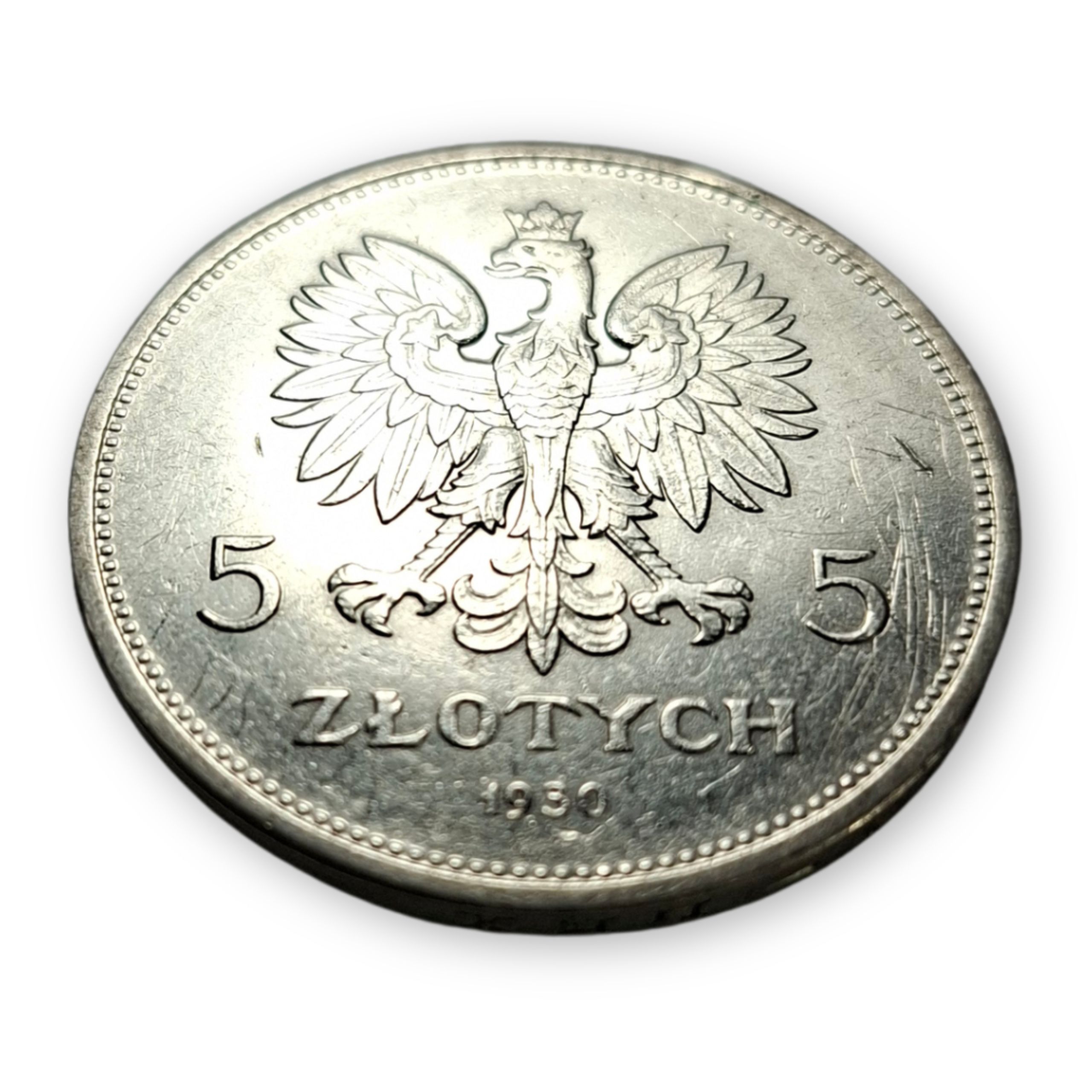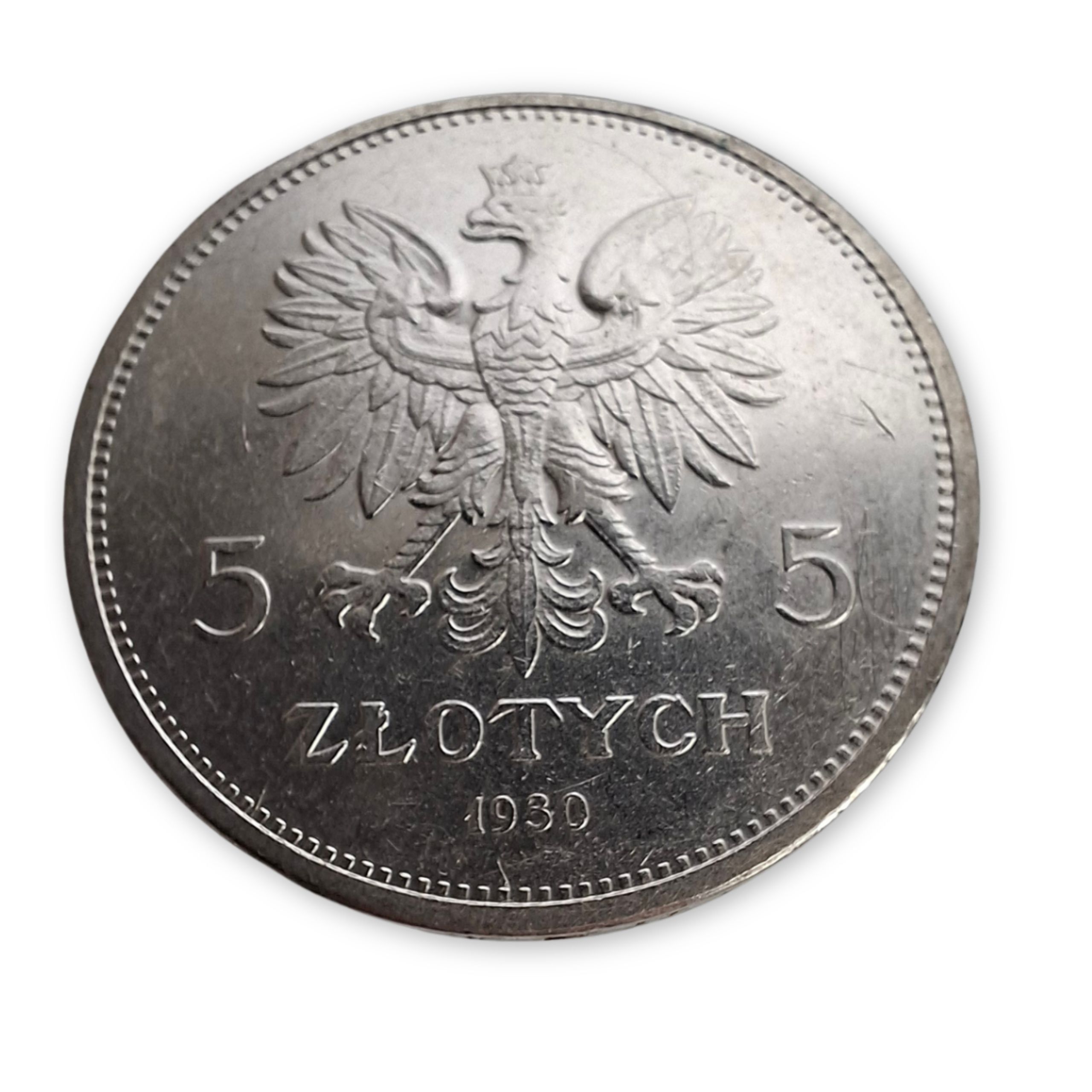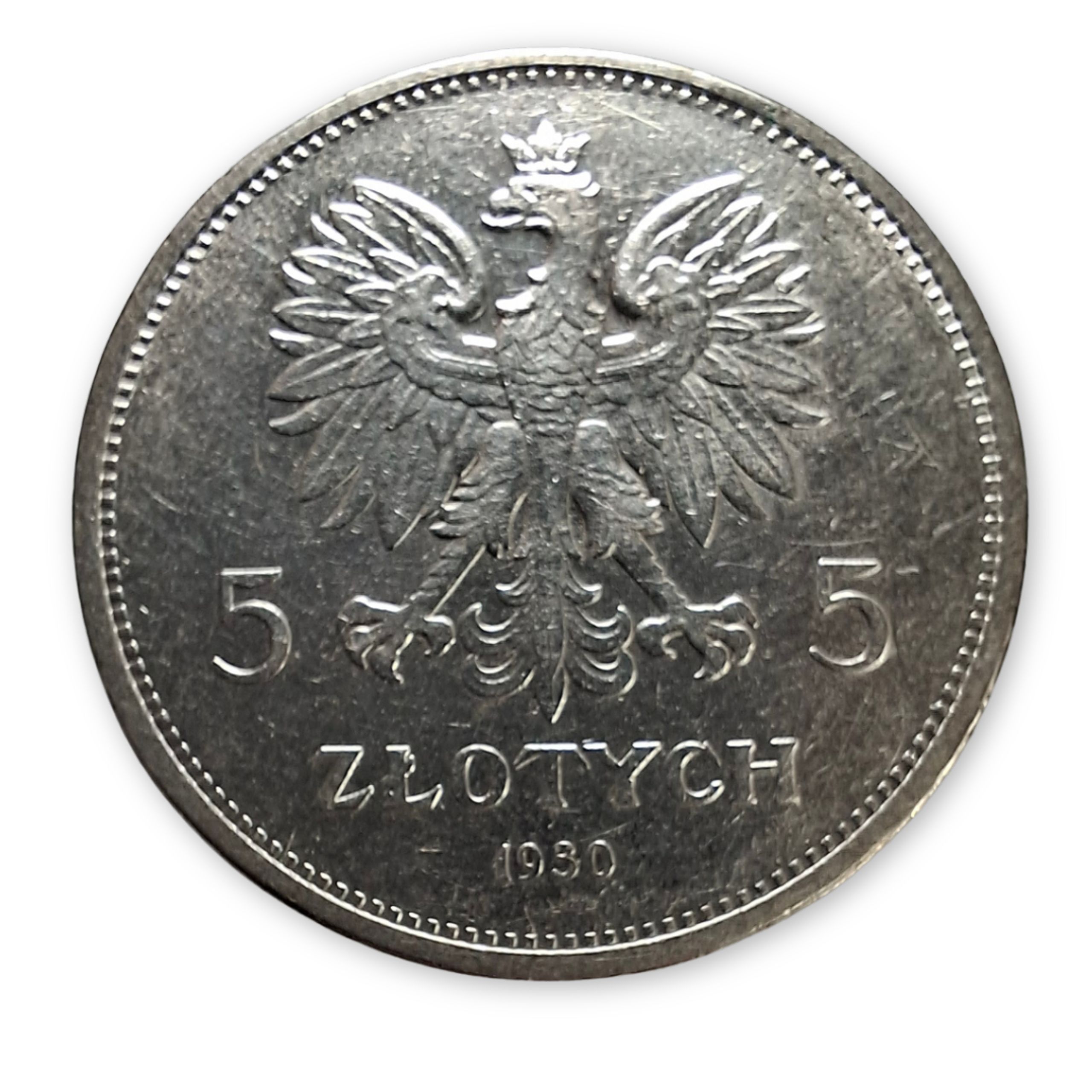 - awers: godło – orła w koronie, dwie cyfry 5 po obu stronach orła, poniżej napis „ZŁOTYCH”, a na dole rok 1930