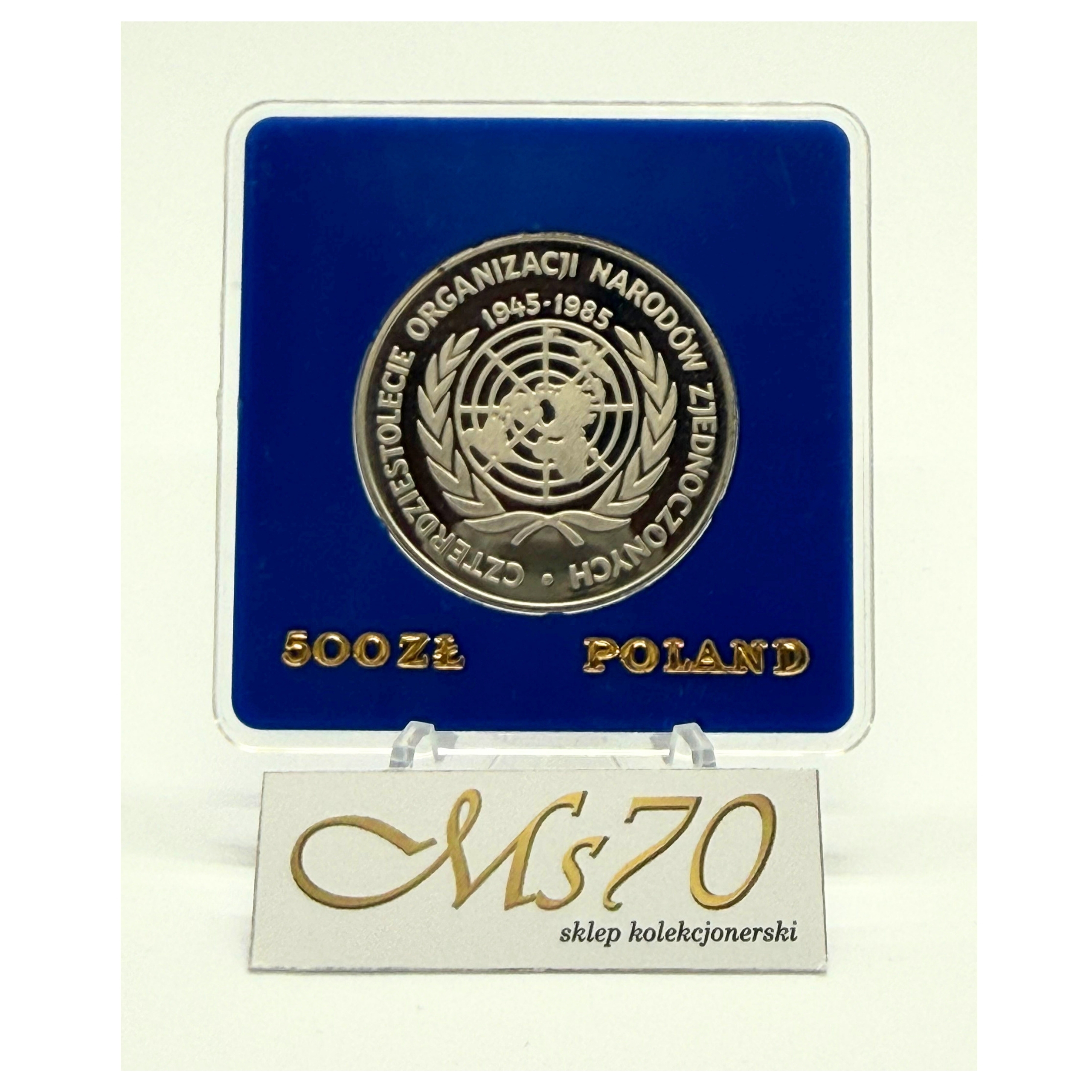 500 złotych 1985 40 lat ONZ – srebrna moneta kolekcjonerska