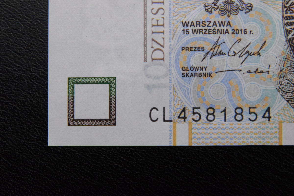 Banknot posiada ciekawy numer radarowy: 4581854.