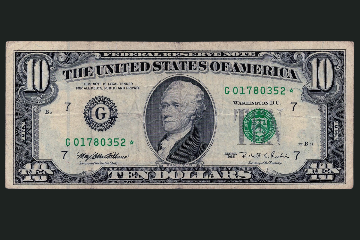 Banknot USA 10 dolarów 1995 G01780352 z gwiazdką