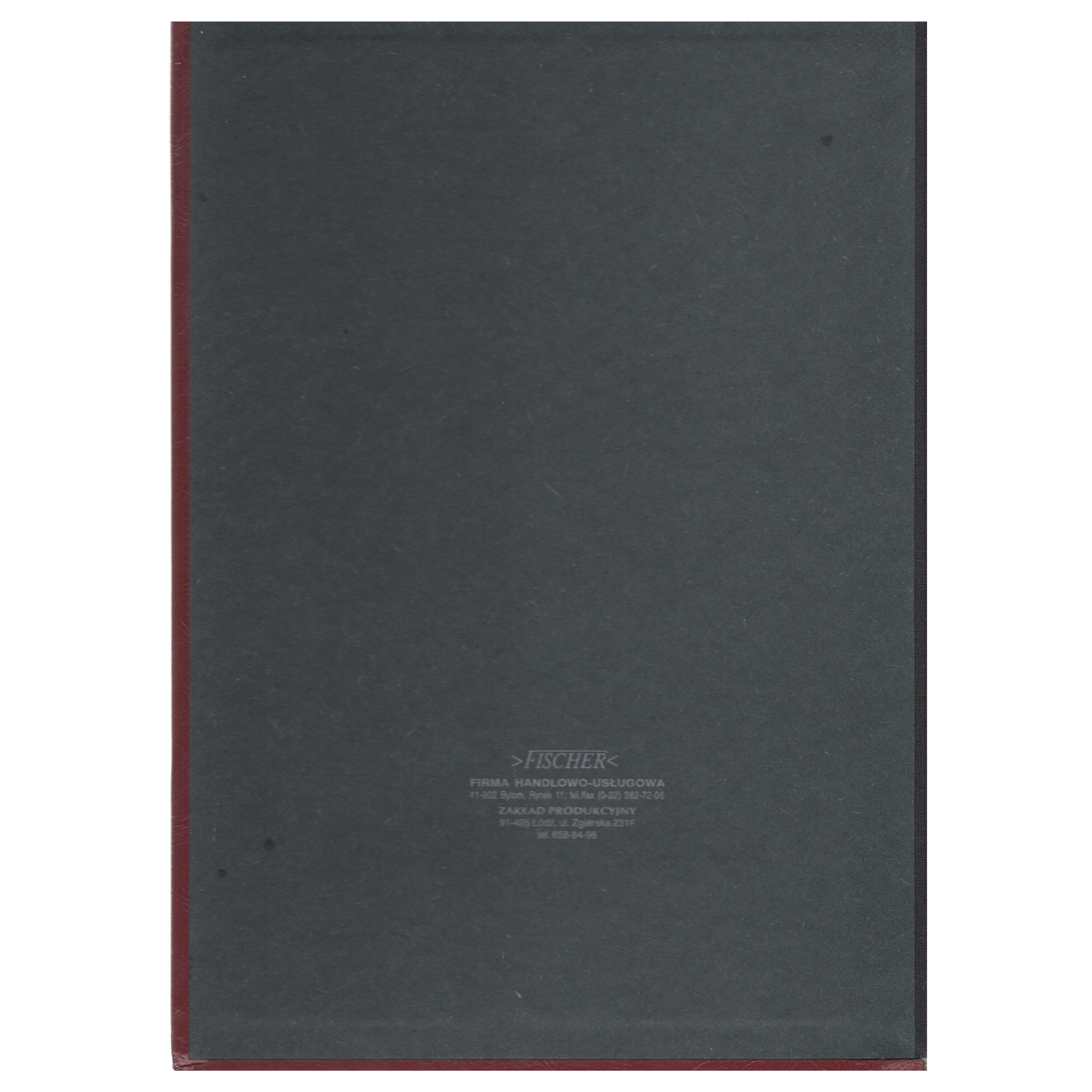 Oprawa: Okładka oraz dopasowany futerał wykonane z wysokiej jakości materiału skóropodobnego w kolorze bordo. Całość ozdobiona efektownymi, złotymi tłoczeniami.