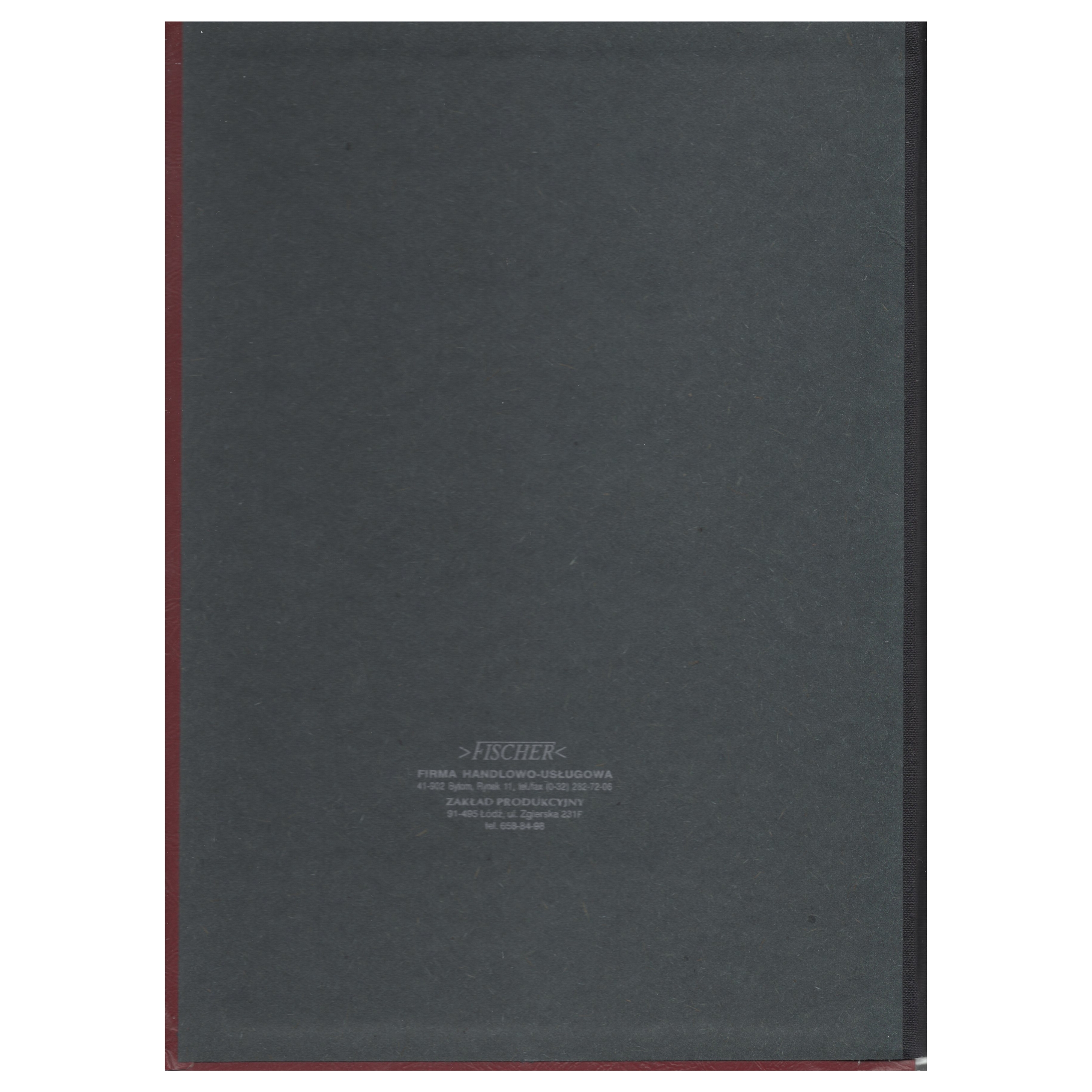 Oprawa: Okładka oraz dopasowany futerał wykonane z wysokiej jakości materiału skóropodobnego w kolorze bordo. Całość ozdobiona efektownymi, złotymi tłoczeniami.