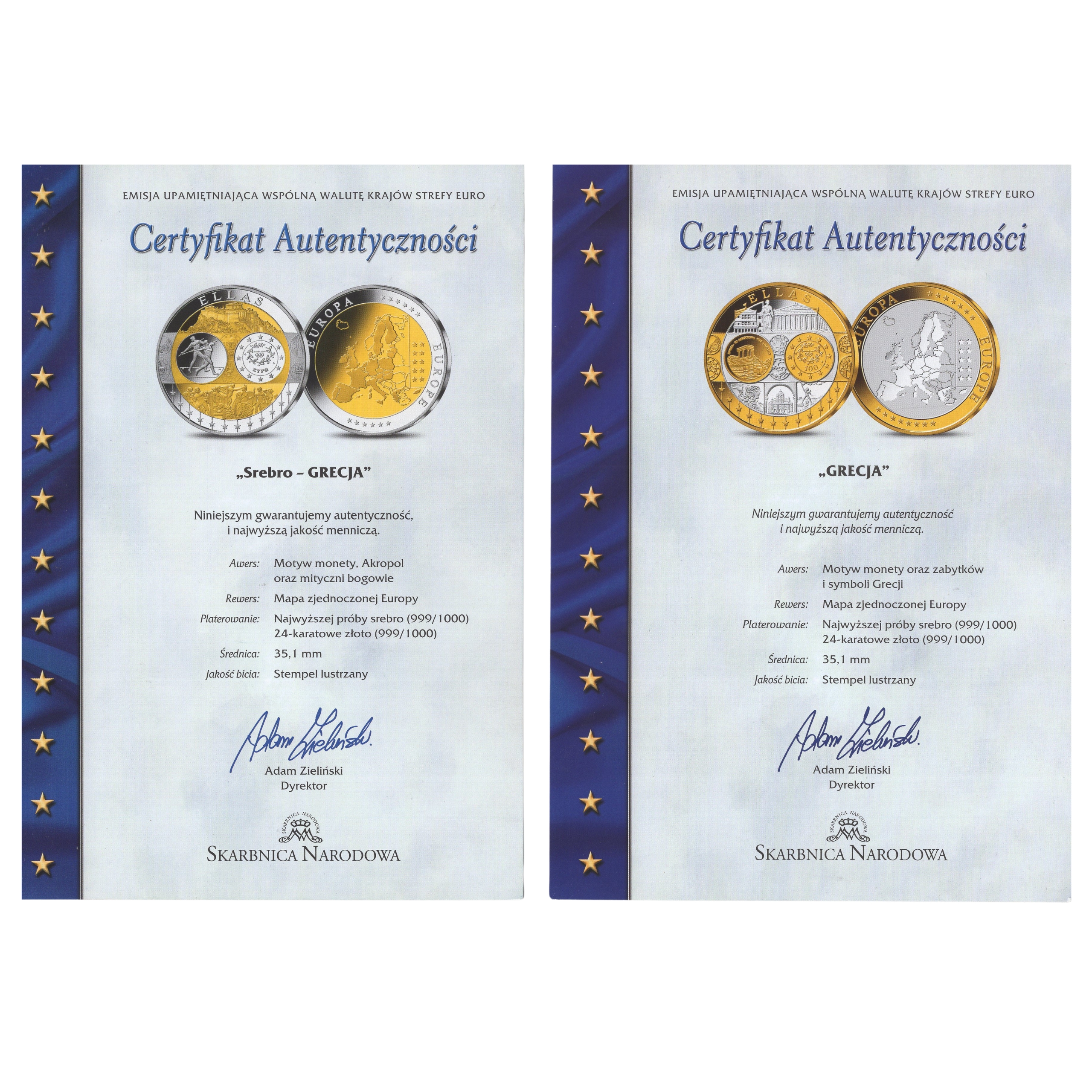 Kolekcjonerski medal pamiątkowy wybity przez Skarbnicę Narodową, upamiętniający integrację europejską. Wykonany z najwyższą dbałością o detale, łączący dwa szlachetne kruszce.