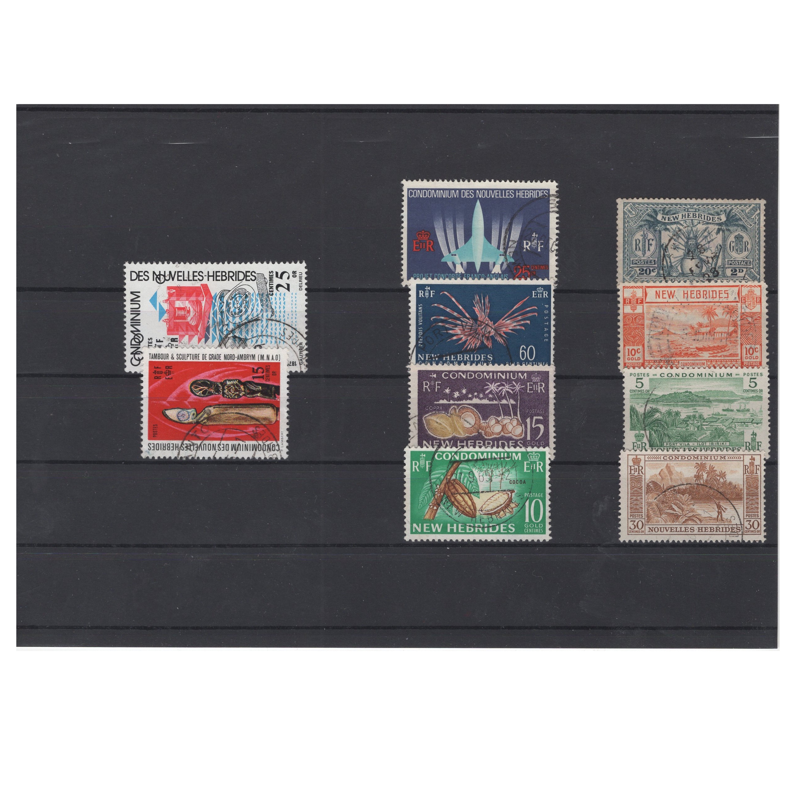 Pakiet 10 znaczków Nowe Hebrydy na czarnej karcie transportowej