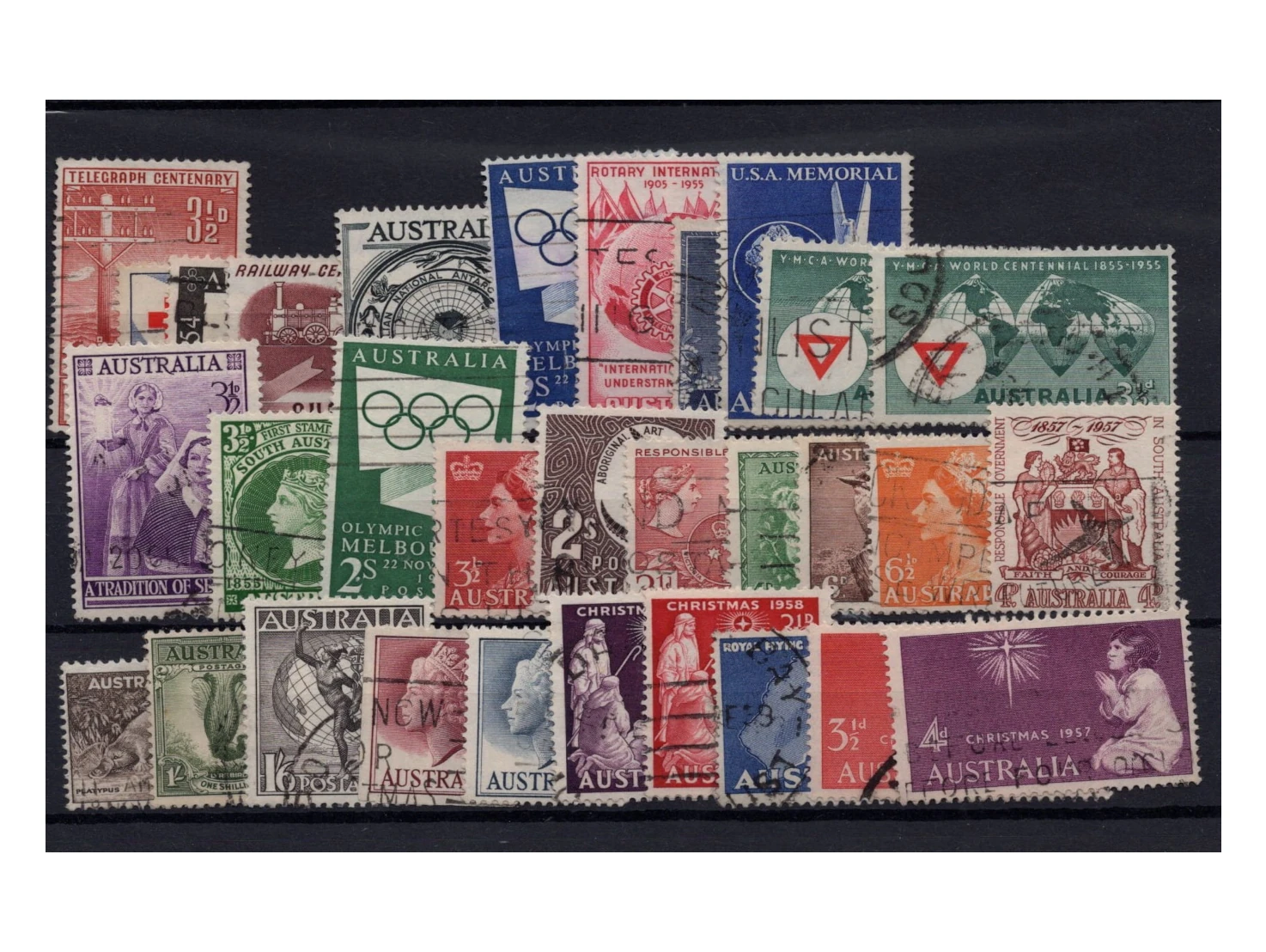 Pakiet Australia 30 znaczków kasowane na czarnej karcie transportowej [088]