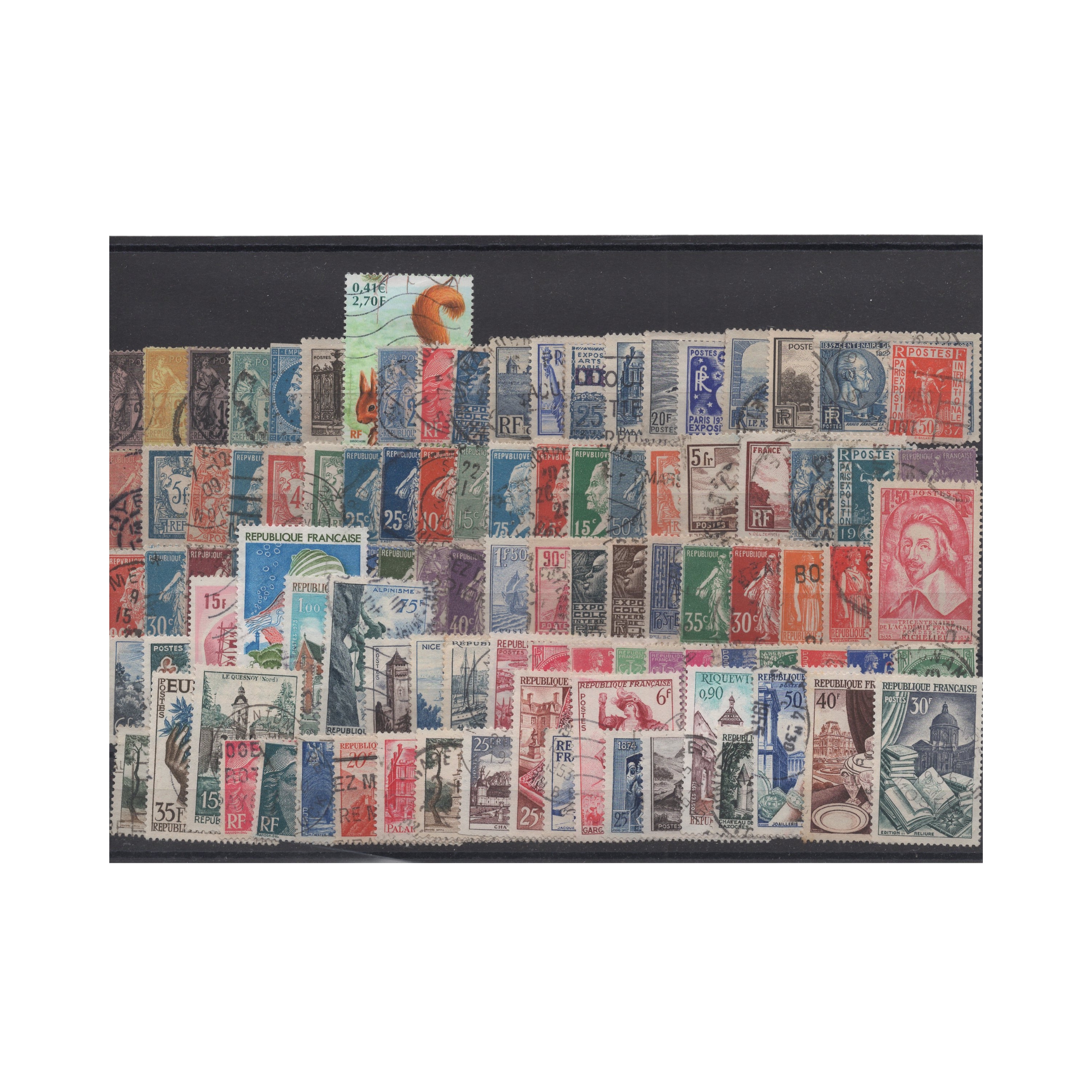 Pakiet Francja 100 znaczków kasowane na czarnej karcie transportowej [129]