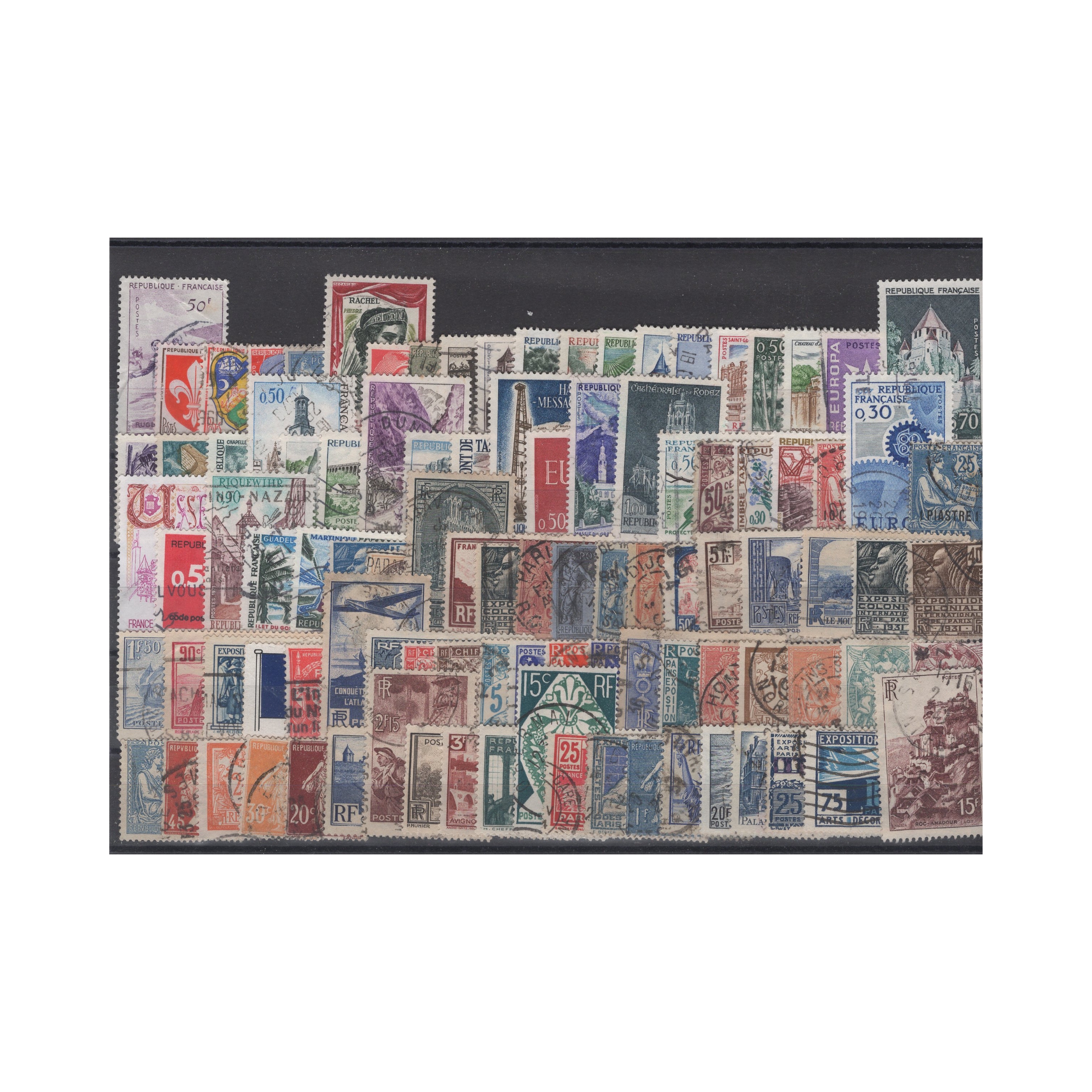 Pakiet Francja 100 znaczków kasowane na czarnej karcie transportowej [150]