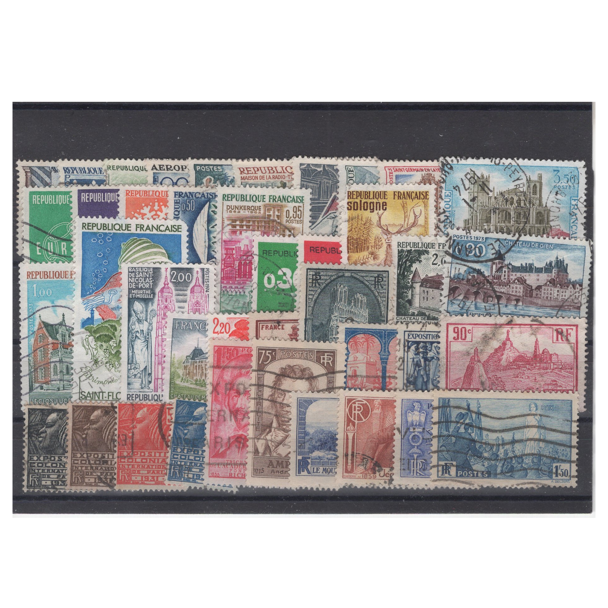Pakiet Francja 40 znaczków kasowane na czarnej karcie transportowej[209]
