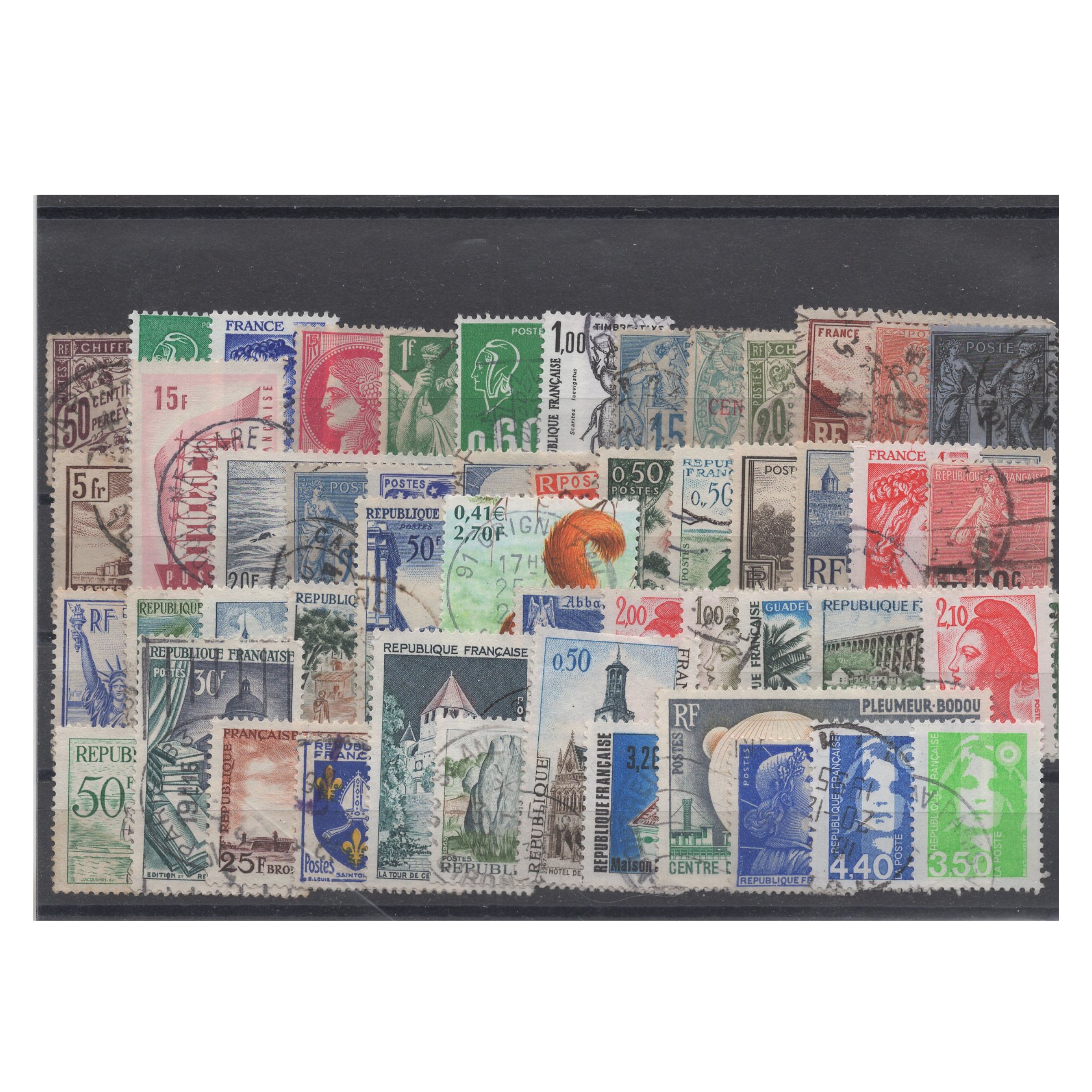 Pakiet Francja 50 znaczków kasowane na czarnej karcie transportowej [214]