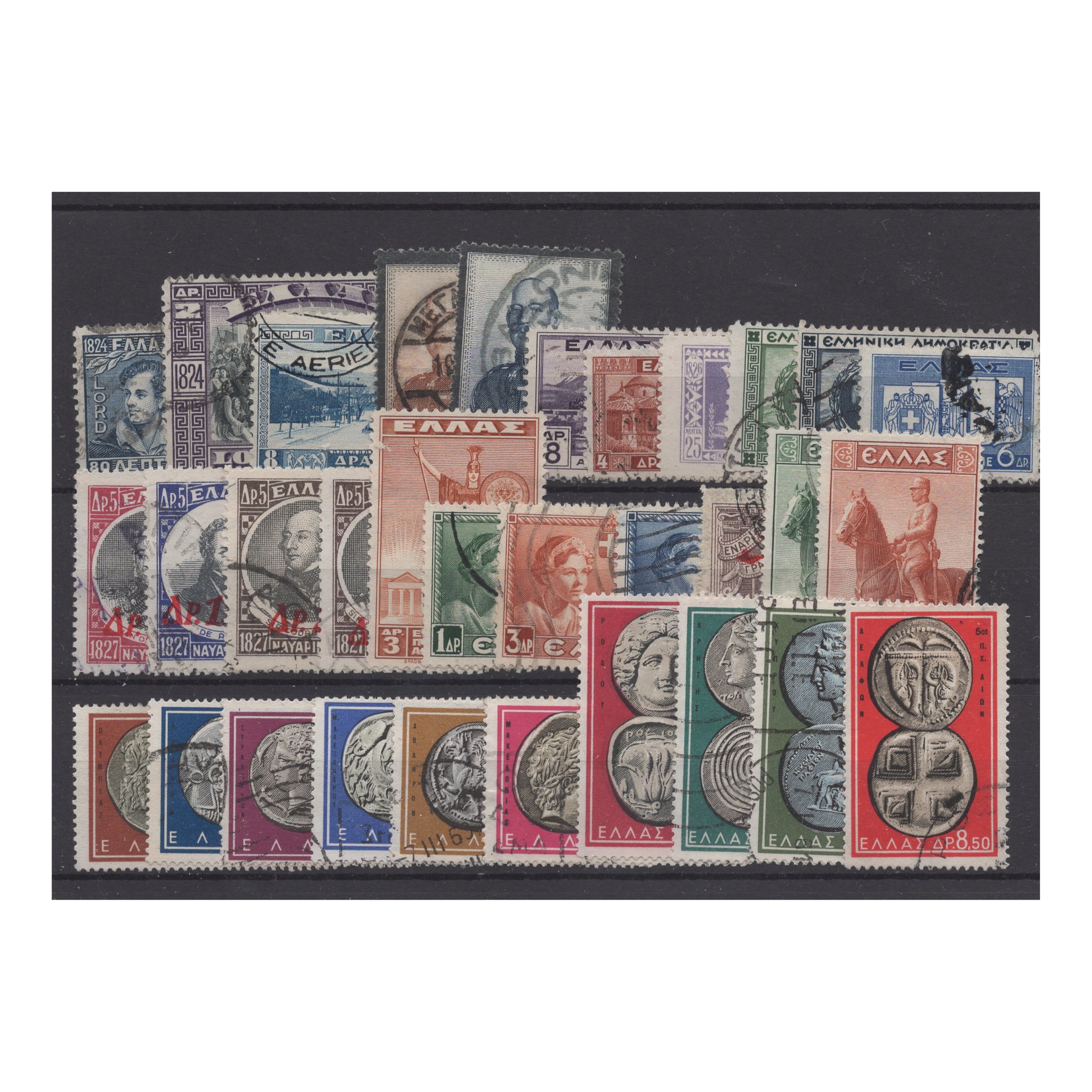 Pakiet Grecja 32 znaczków kasowanych na czarnej karcie transportowej[043]