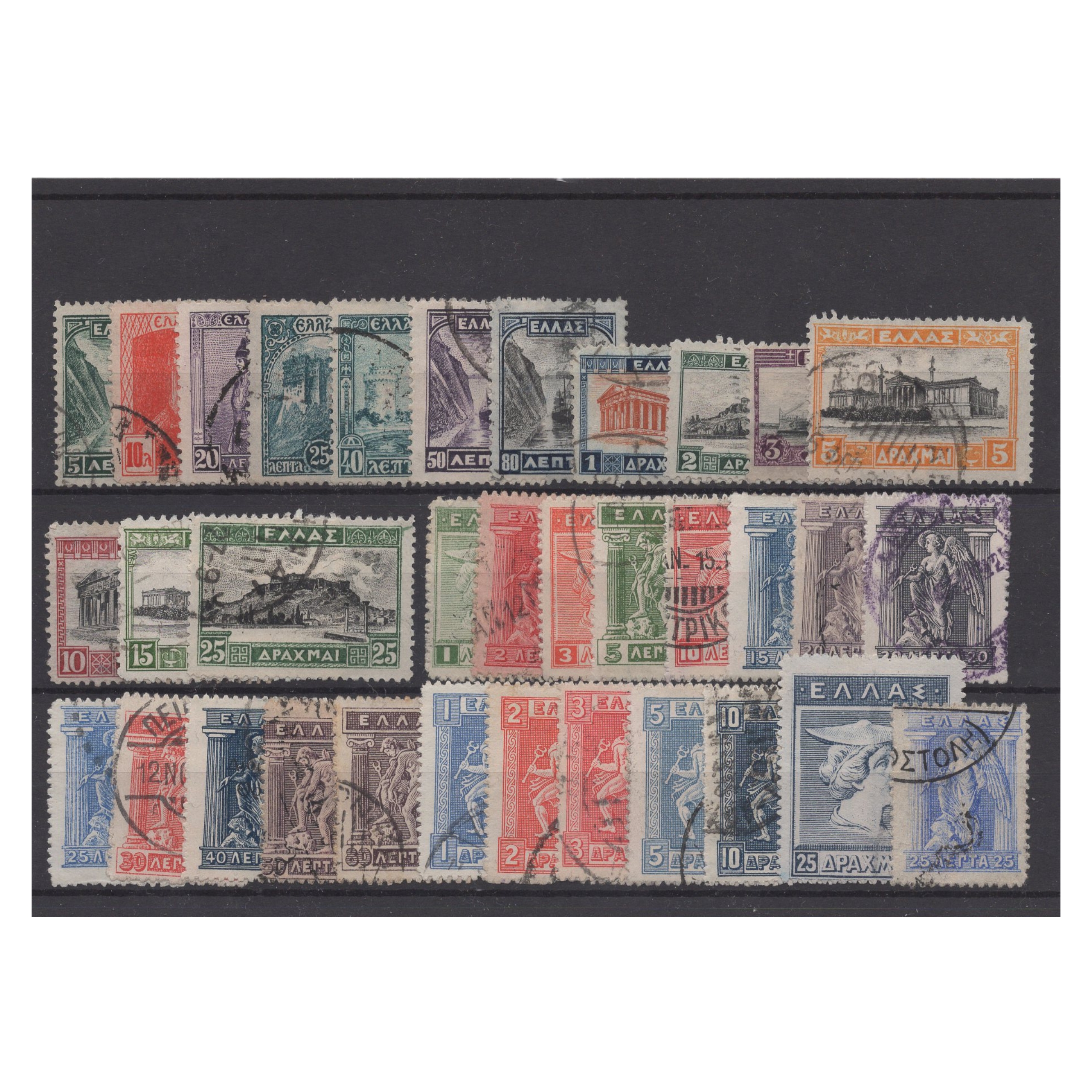 Pakiet Grecja 33 znaczków kasowanych na czarnej karcie transportowej [044]