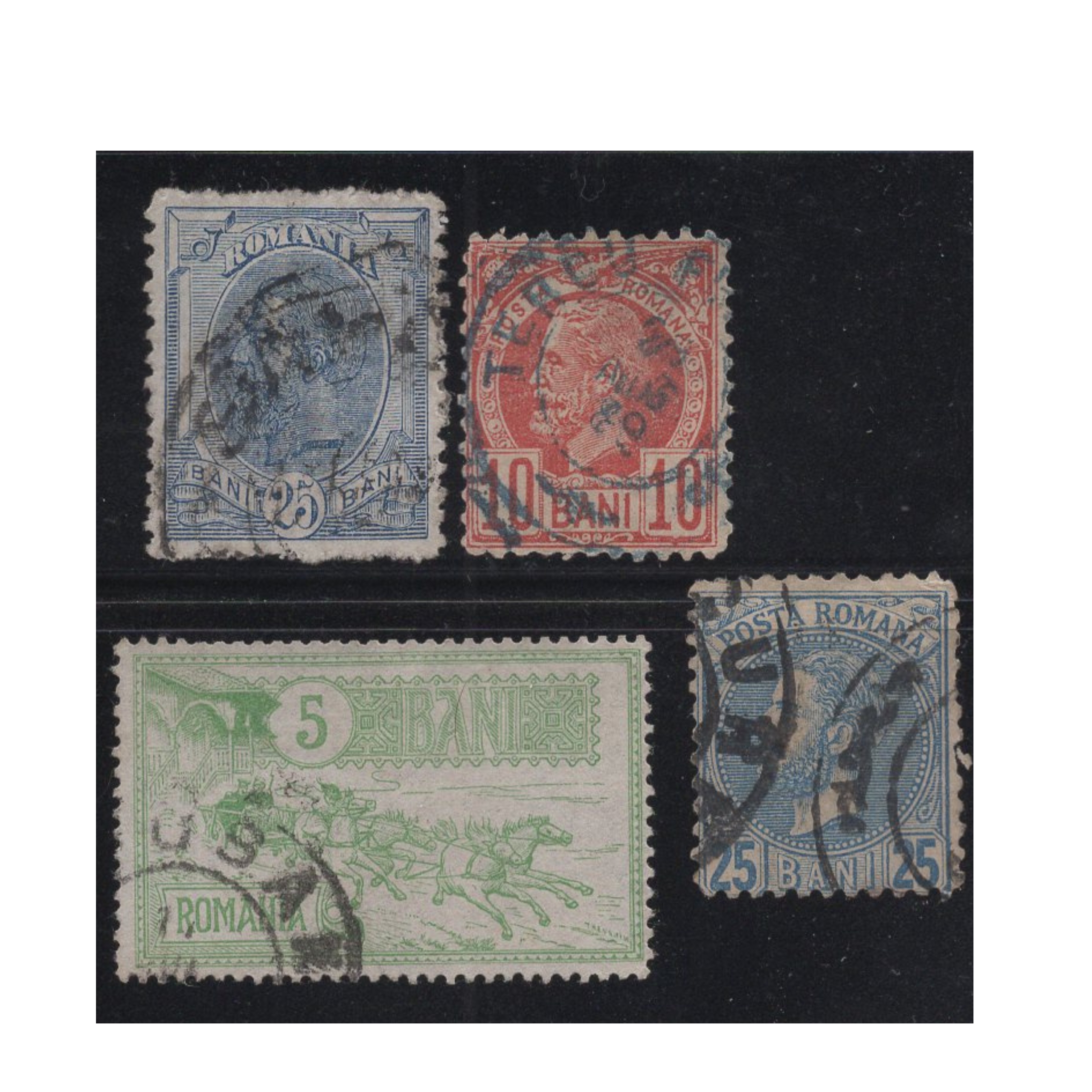 Pakiet Rumunia 5 znaczków kasowane na czarnej karcie transportowej [116]