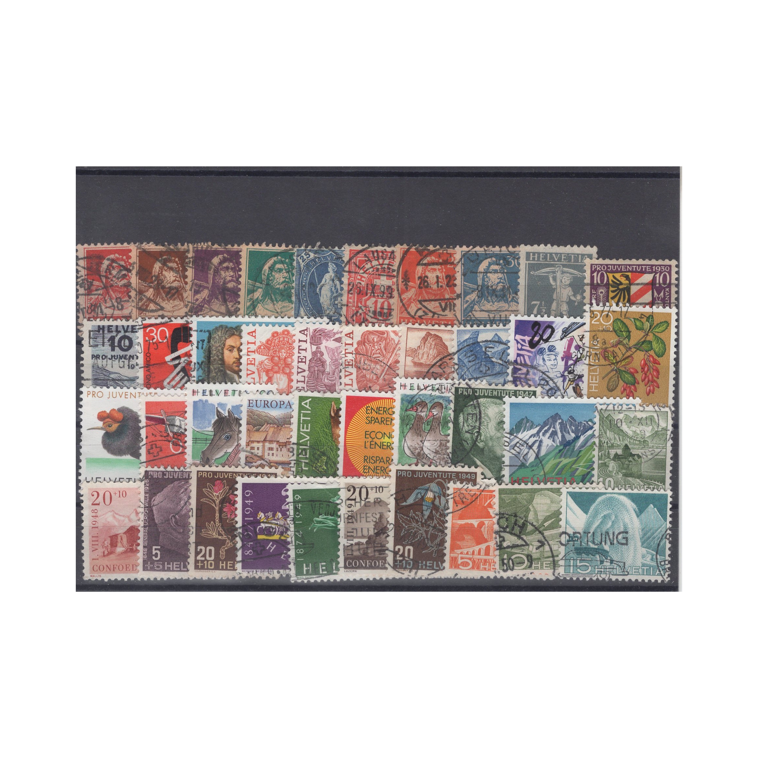 Zestaw zawiera 40 oryginalnych znaczków ze Szwajcarii.