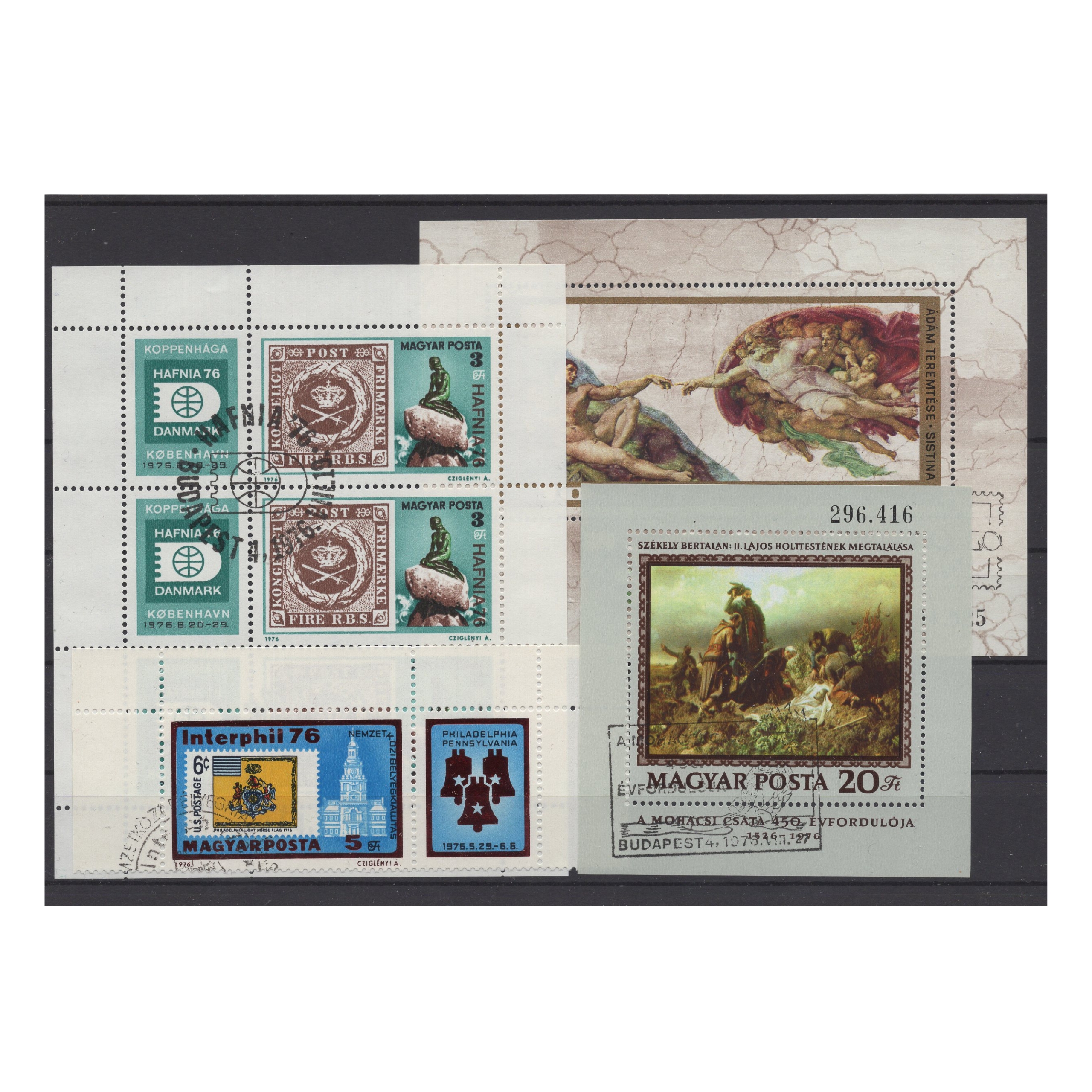 Pakiet Węgry 4 znaczki kasowane na czarnej karcie transportowej [140]