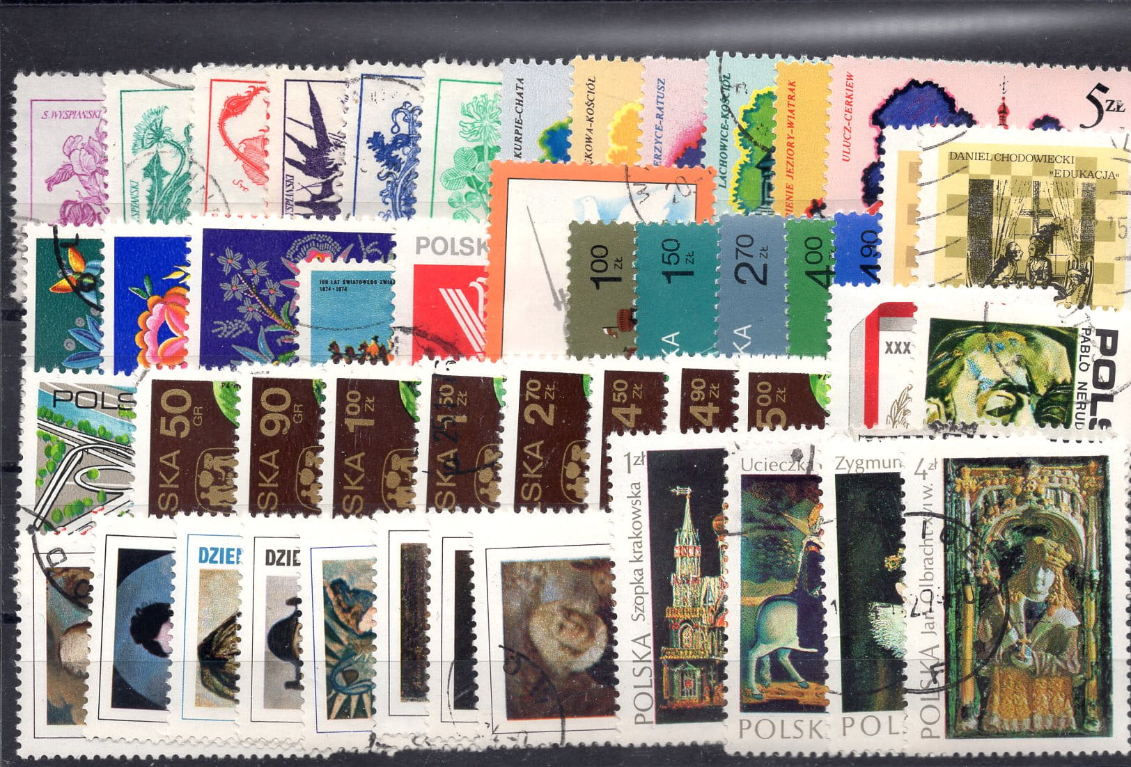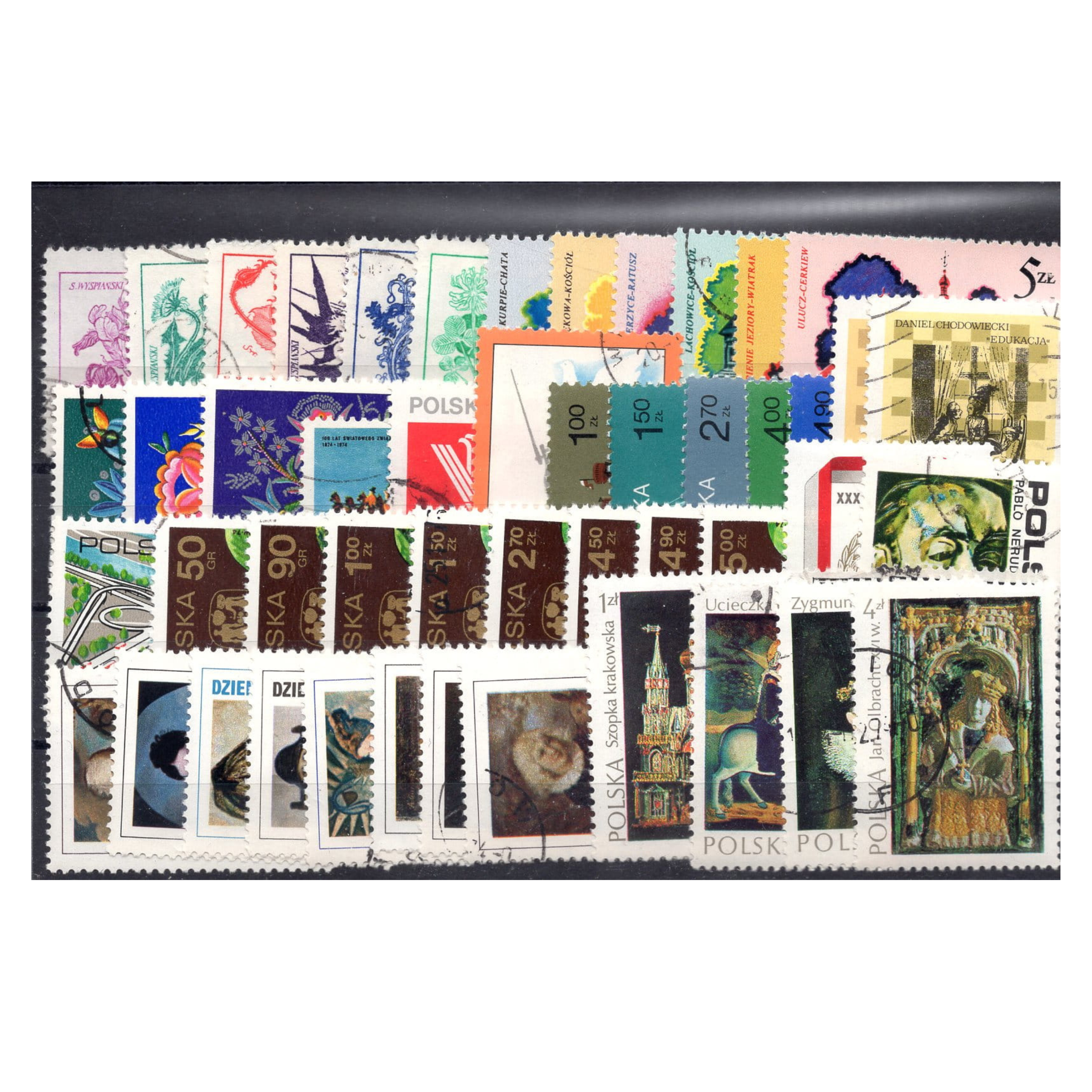 /Pakiet znaczków polskich z roku 1974 na czarnej karcie transportowej [227]