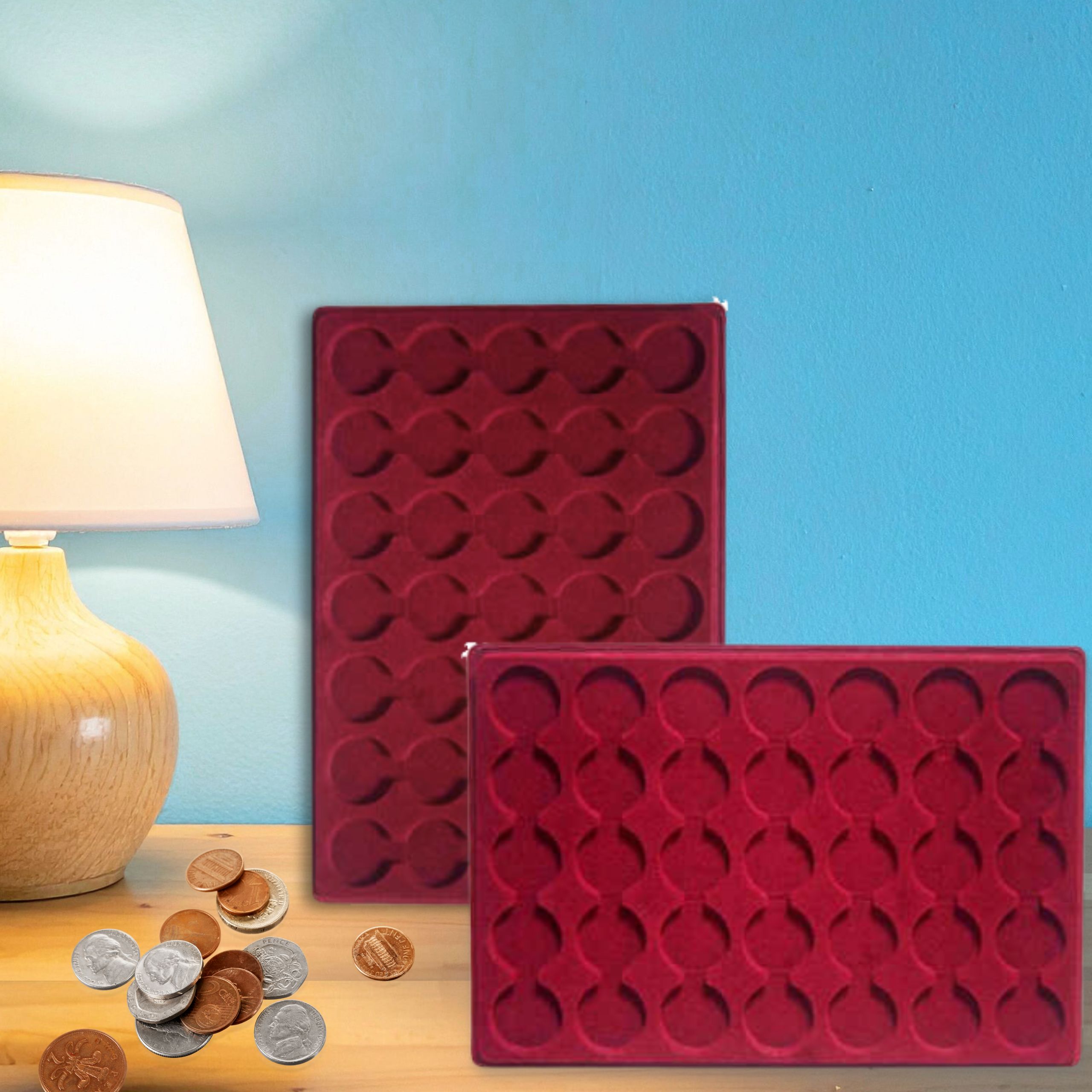 Stwórz własny system ekspozycji! Palety możesz dowolnie łączyć i układać w kuferkach po 5 lub 10 sztuk, tworząc elegancką bibliotekę numizmatyczną. Dzięki temu Twoja kolekcja zyska nie tylko doskonałą ochronę, ale również profesjonalny wygląd, który zrobi wrażenie na każdym miłośniku monet. A Tobie da poczucie zadowolenia i spokoju.
