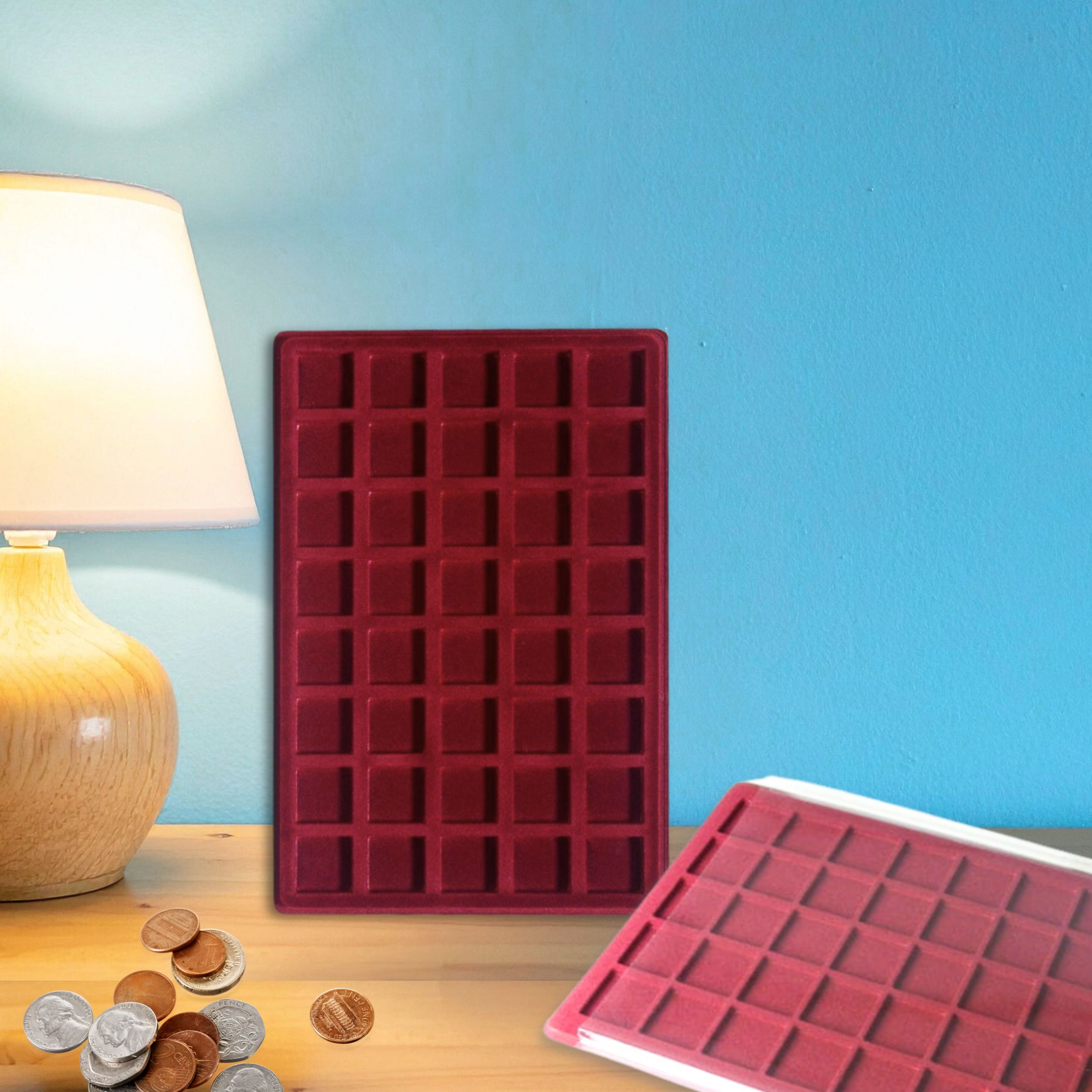Stwórz własny system ekspozycji! Palety możesz dowolnie łączyć i układać w kuferkach po 5 lub 10 sztuk, tworząc elegancką bibliotekę numizmatyczną. Dzięki temu Twoja kolekcja zyska nie tylko doskonałą ochronę, ale również profesjonalny wygląd, który zrobi wrażenie na każdym miłośniku monet. A Tobie da poczucie zadowolenia i spokoju.