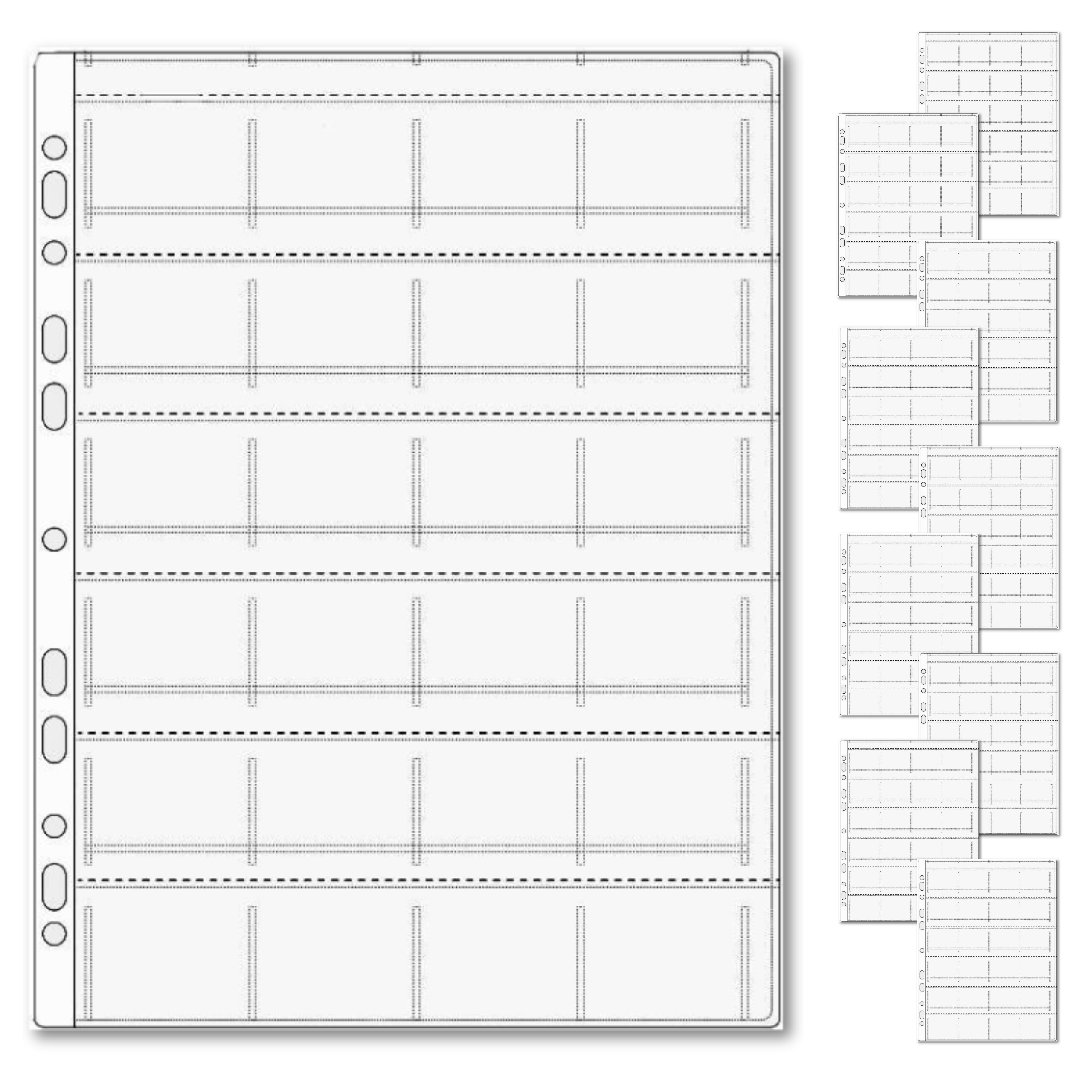 Dzięki uniwersalnemu rozstawowi oczek do wpinania, karty pasują do większości dostępnych na rynku segregatorów i klaserów o wymiarze około A4. Są łatwe do montażu i demontażu, co umożliwia swobodne wyjmowanie i uzupełnianie kart walorami.
