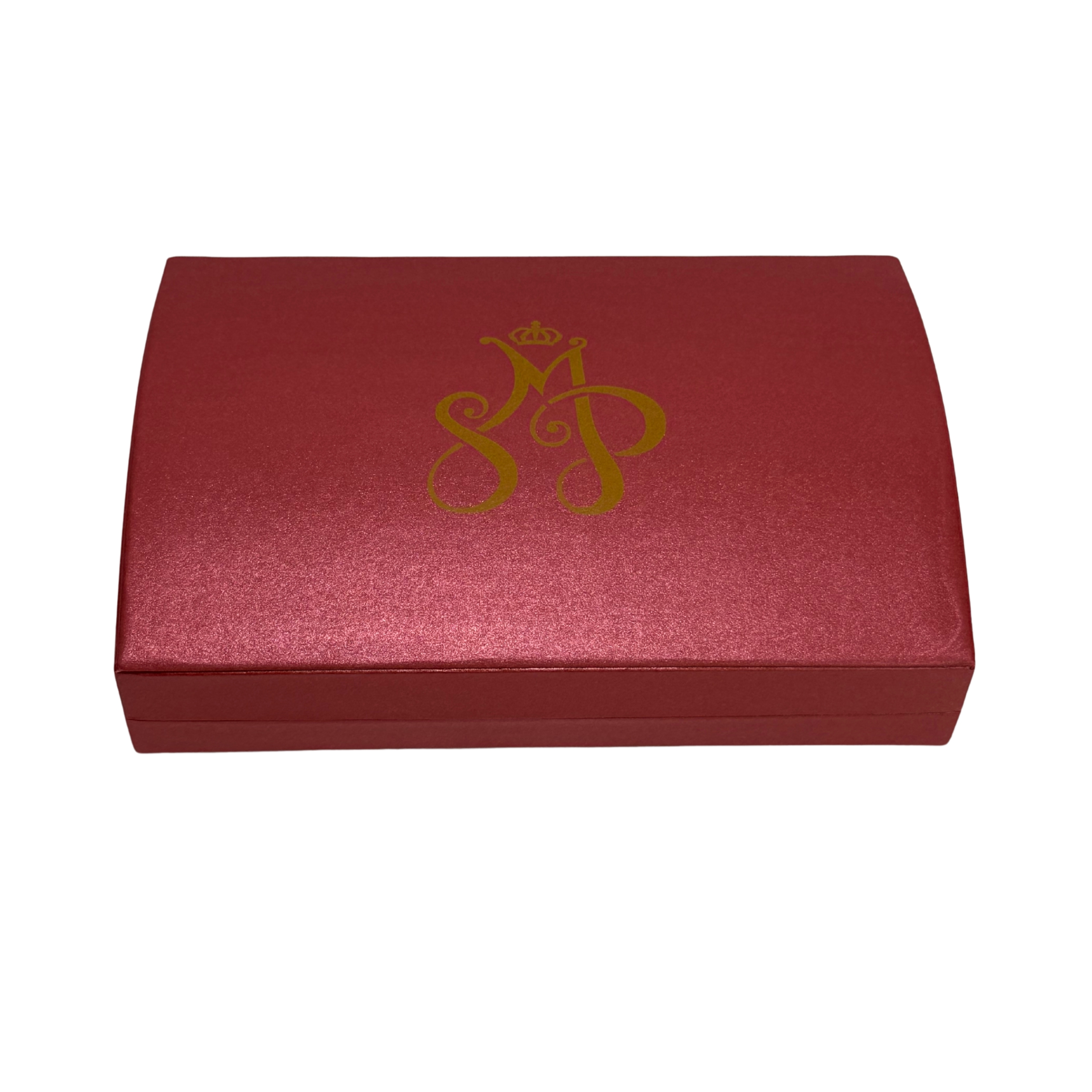 • Elegancka Oprawa: Numizmaty są umieszczone w kapsułach ochronnych i zaprezentowane w ekskluzywnym, czerwonym etui z welurowym wykończeniem oraz złotym logotypem na wieczku.